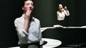 HARING: (She thinks for a long time, hesitates and then that typical, quiet focussed look appears in her eyes. Almost whispering she recites a snippet of script) ‘Movement is painful / and it only touches the apparatus that tunes the strings / the instrument itself has gone quietly into standby mode.’ (Silence) That goes to the heart of UNISONO.