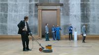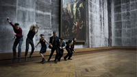 FCB: You have six characters: two museum guards, three visitors, officially inspired by Band of Outsiders, and the curator, the main character. He’s been tasked with getting the paintings out of the room but cannot get the last one, Le Coup de Lance, out.
